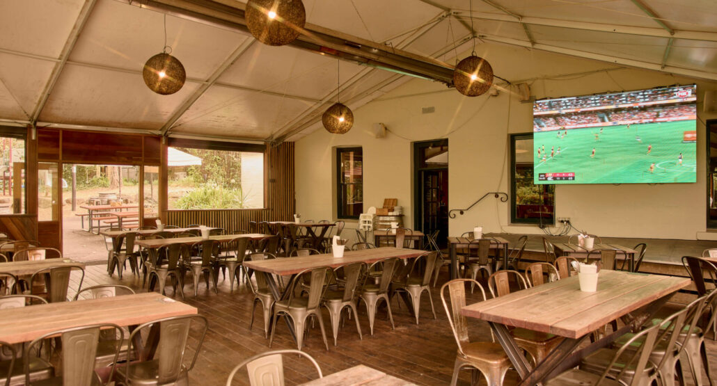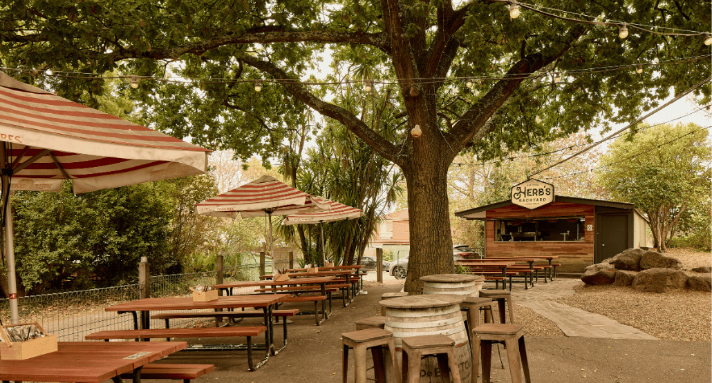 A spacious outdoor area featuring a kid’s playground, ideal for larger groups. Available for semi-private hire, with some public access.