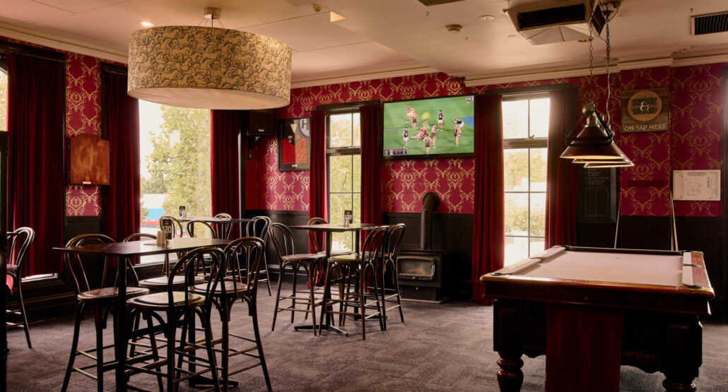 Ideal for cocktail-style events, the Front Bar offers high tables, a cozy fireplace, a billiards table and convenient access to the bar.