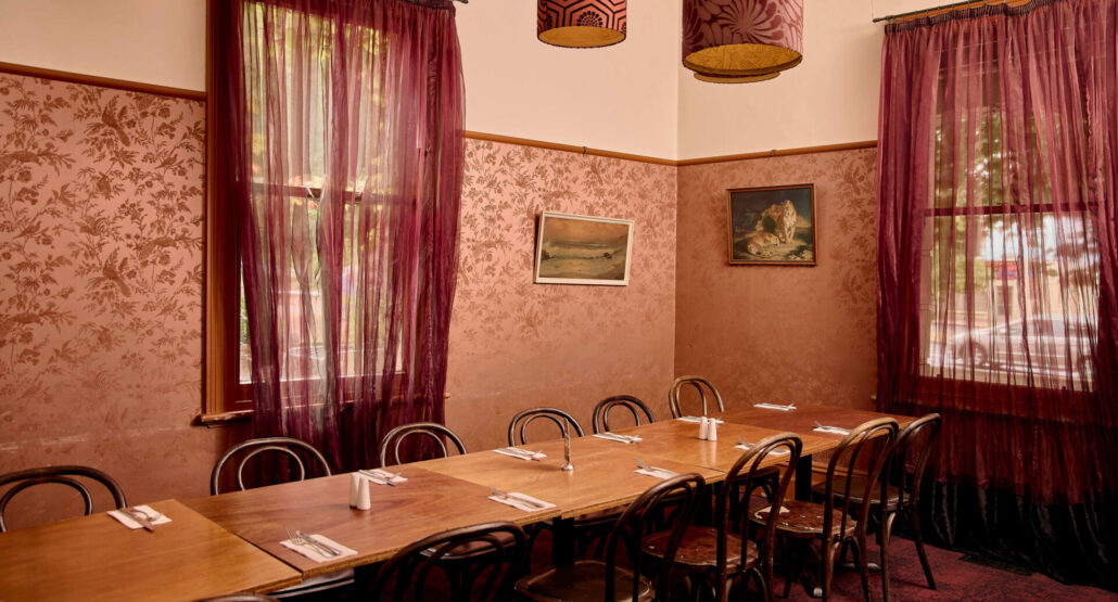 A charming and intimate space, perfect for small events or private dining, complete with an open fireplace and elegant decor. Available for exclusive hire.